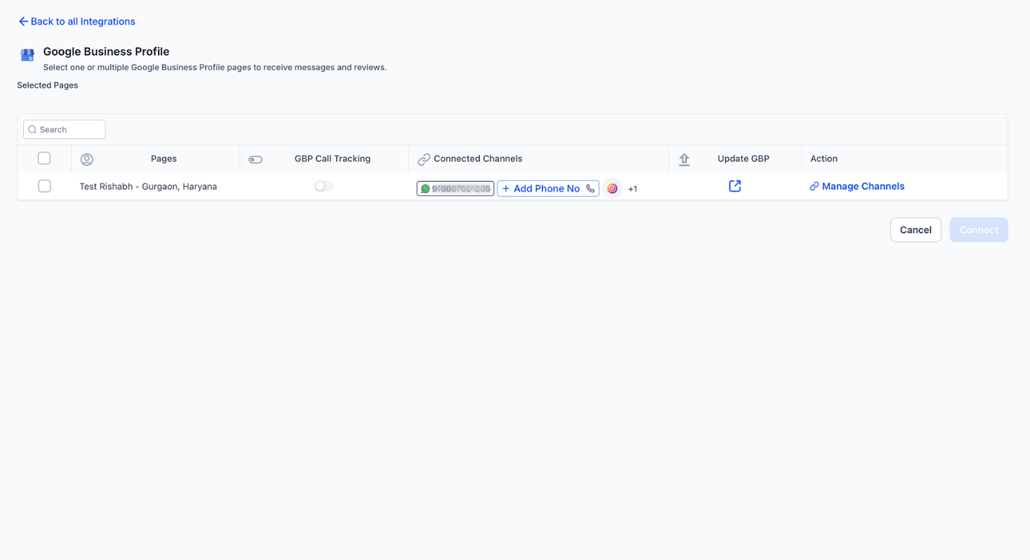 Étape 2 : Connectez un compte GBP et naviguez vers le mode de sélection de page.