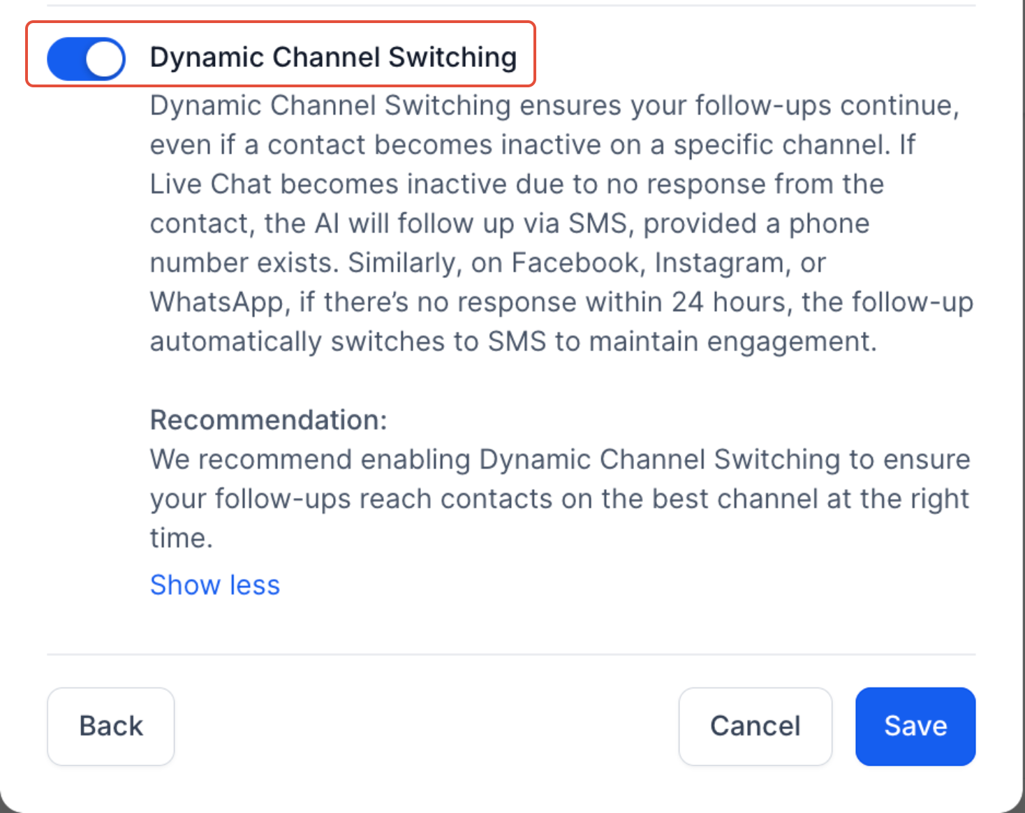 Sur des plateformes comme Facebook, Instagram, ou WhatsApp, si aucune réponse n'est fournie dans les 24 heures, les relances passeront automatiquement en SMS pour maintenir la conversation.